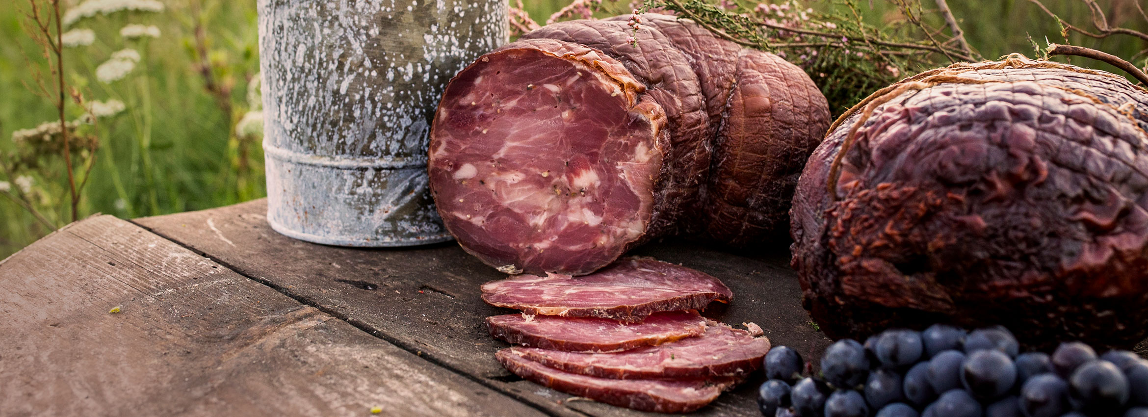 Jesteśmy niewielką rodzinną firmą pochodzącą z Sokółki koło Białegostoku. Specjalizujemy się w produkcji wędlin i mięs dojrzewających, wytwarzanych zgodnie z tradycyjnymi podlaskimi recepturami. Oferujemy wyroby najwyższej jakości, pozbawione konserwantów oraz sztucznych dodatków. Przywiązujemy ogromną wagę do surowców, z których powstają nasze wędliny, dlatego dostarczają nam je wyłącznie lokalni hodowcy. Mięso pochodzi od trzody hodowanej na głębokiej ściółce i żywionej tradycyjnie, dzięki czemu nasze szynki i kiełbasy mają niepowtarzalny smak prawdziwych domowych wędlin. Do wędzenia wykorzystujemy drewno olchowe, którego aromat uwydatnia walory smakowe naszych wędlin.